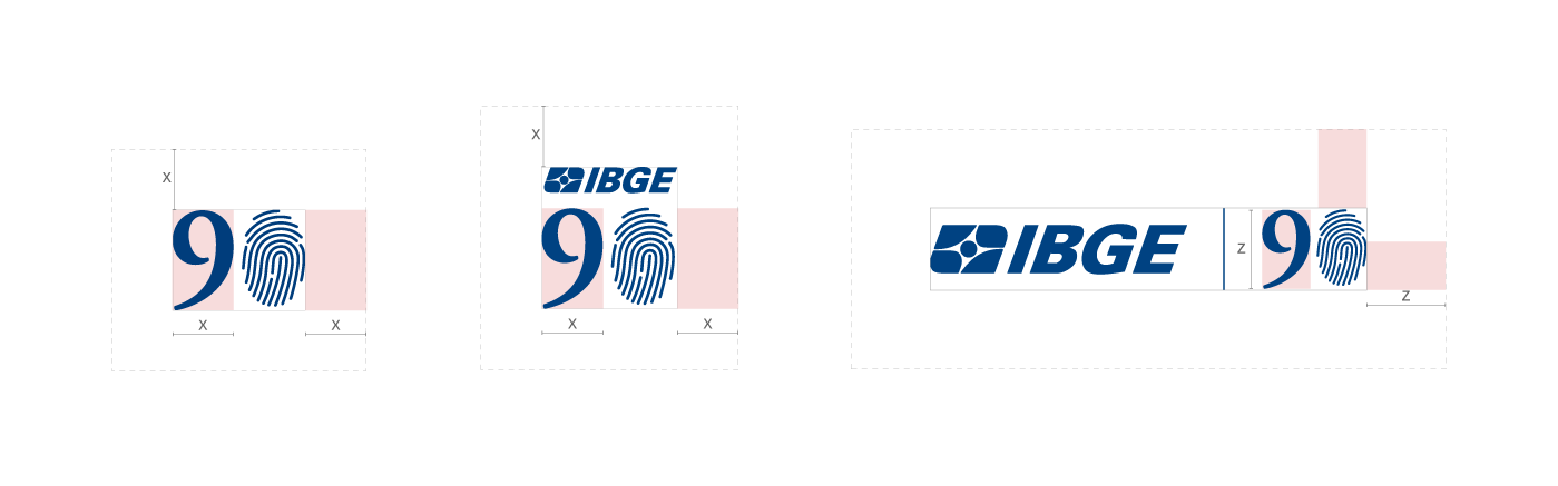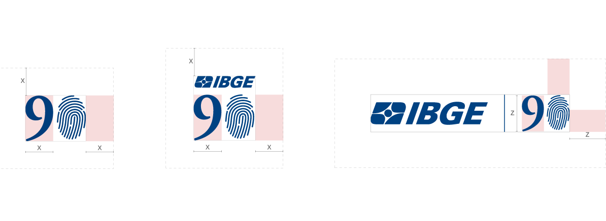 Além da versão principal, a identidade também prevê versões que incorporam a marca do IBGE.