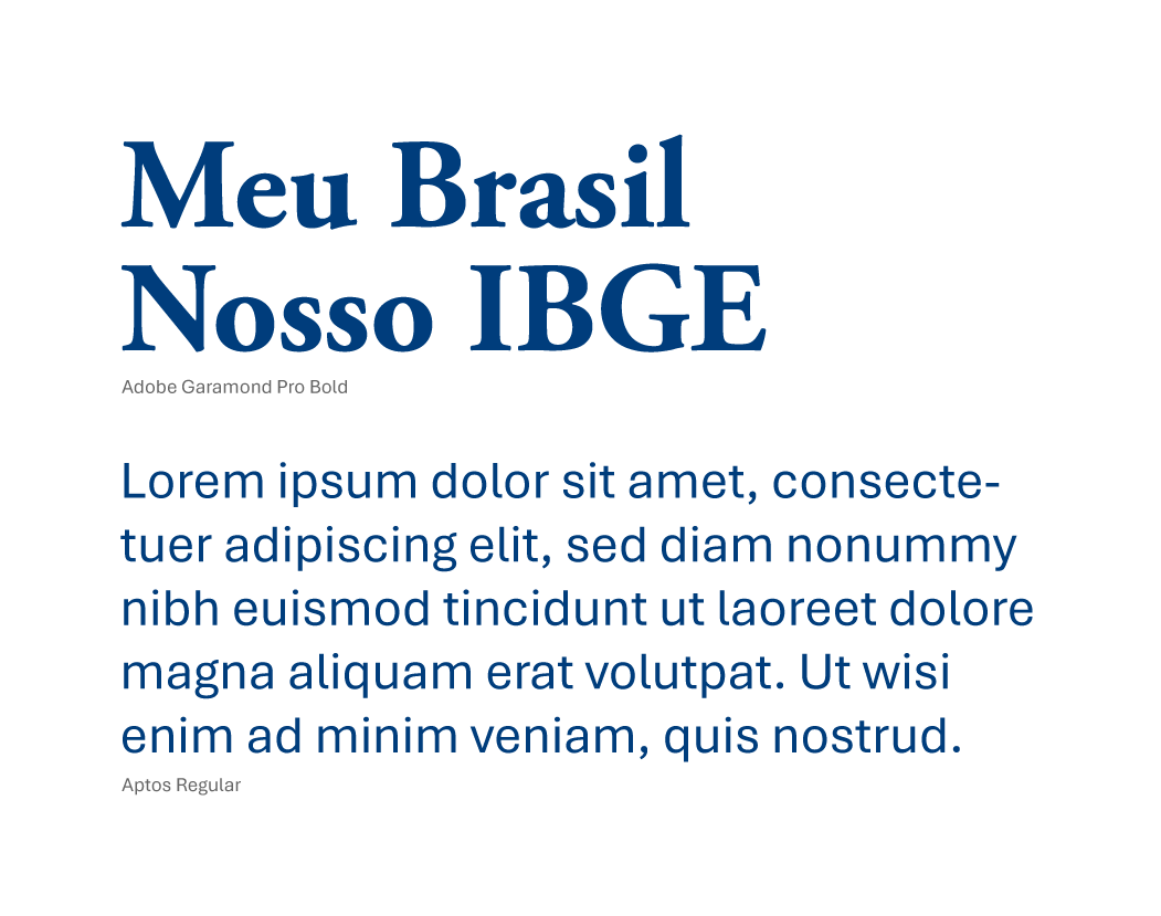 A fonte de título é a Adobe Garamond Pro, preferencialmente a versão Bold, e fonte para texto é a família Aptos.