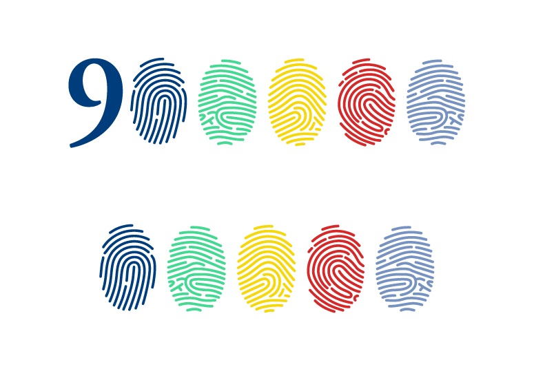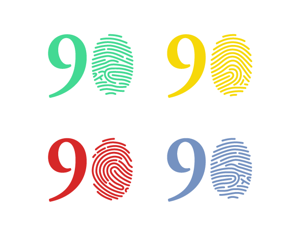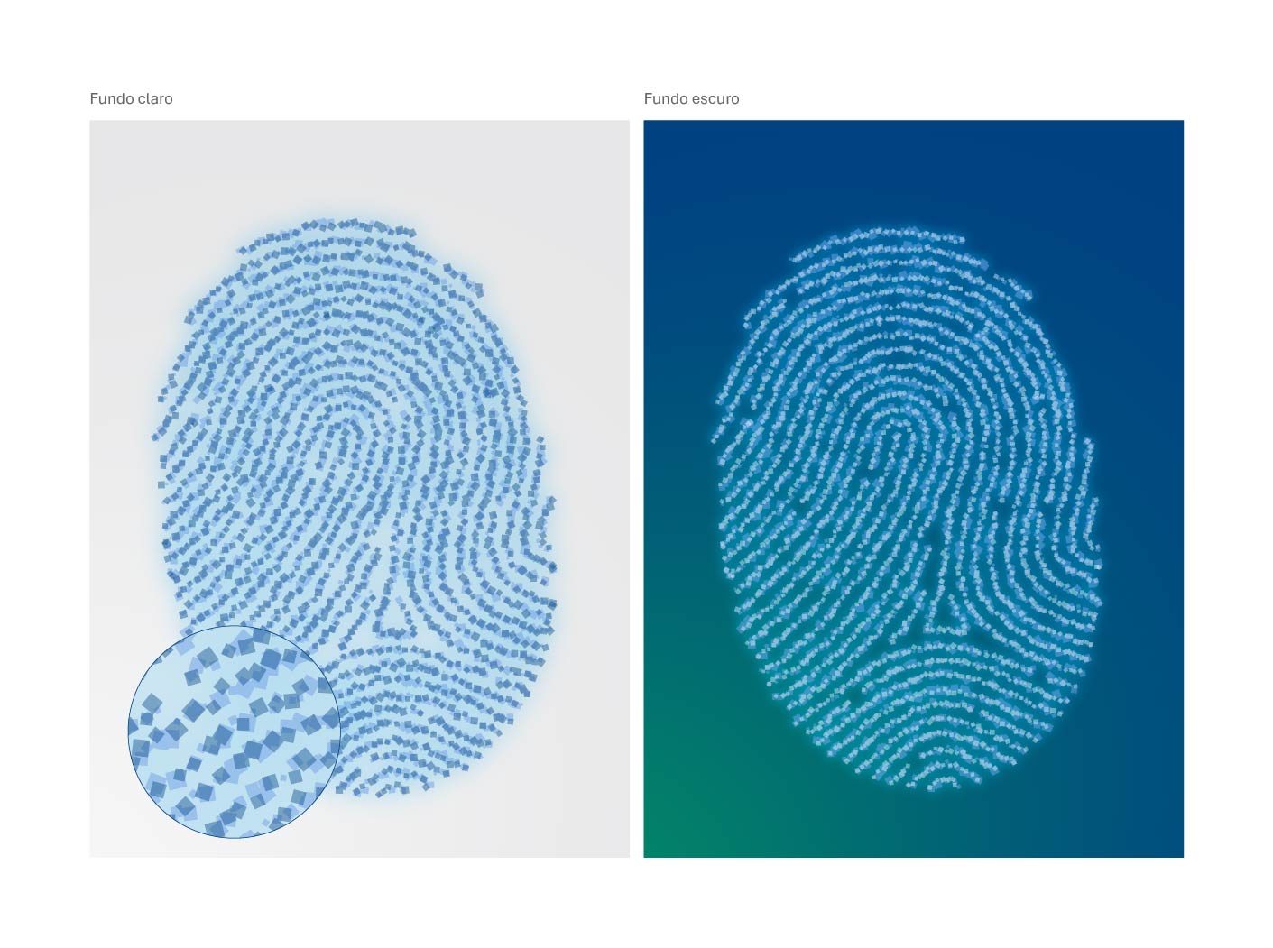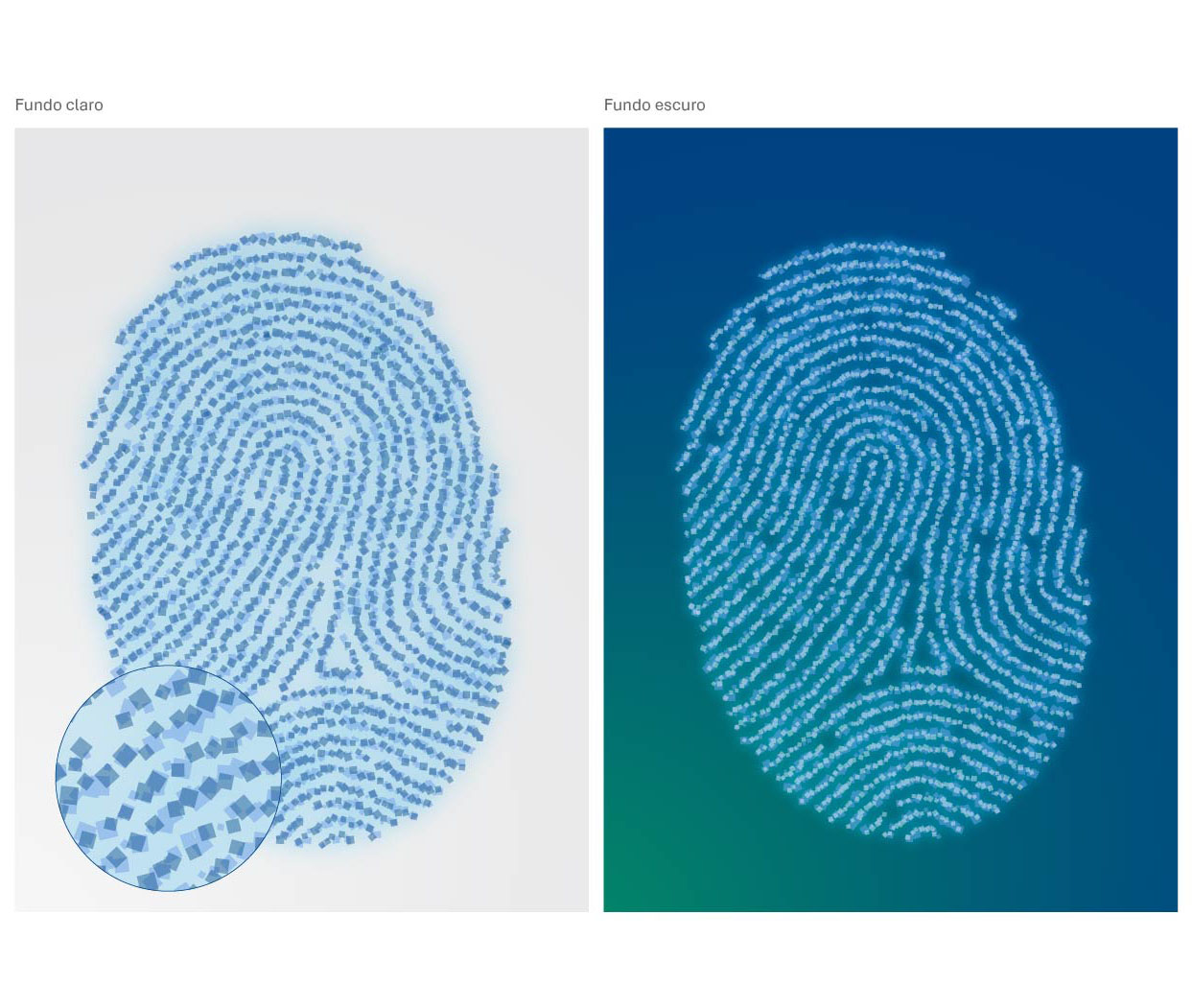 Adicionando diversidade para a identidade visual, foram criados diferentes desenhos de impressão digital. Eles podem ser usados como elementos gráficos para enriquecer e diversificar as composições criadas para os 90 anos.