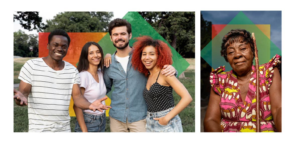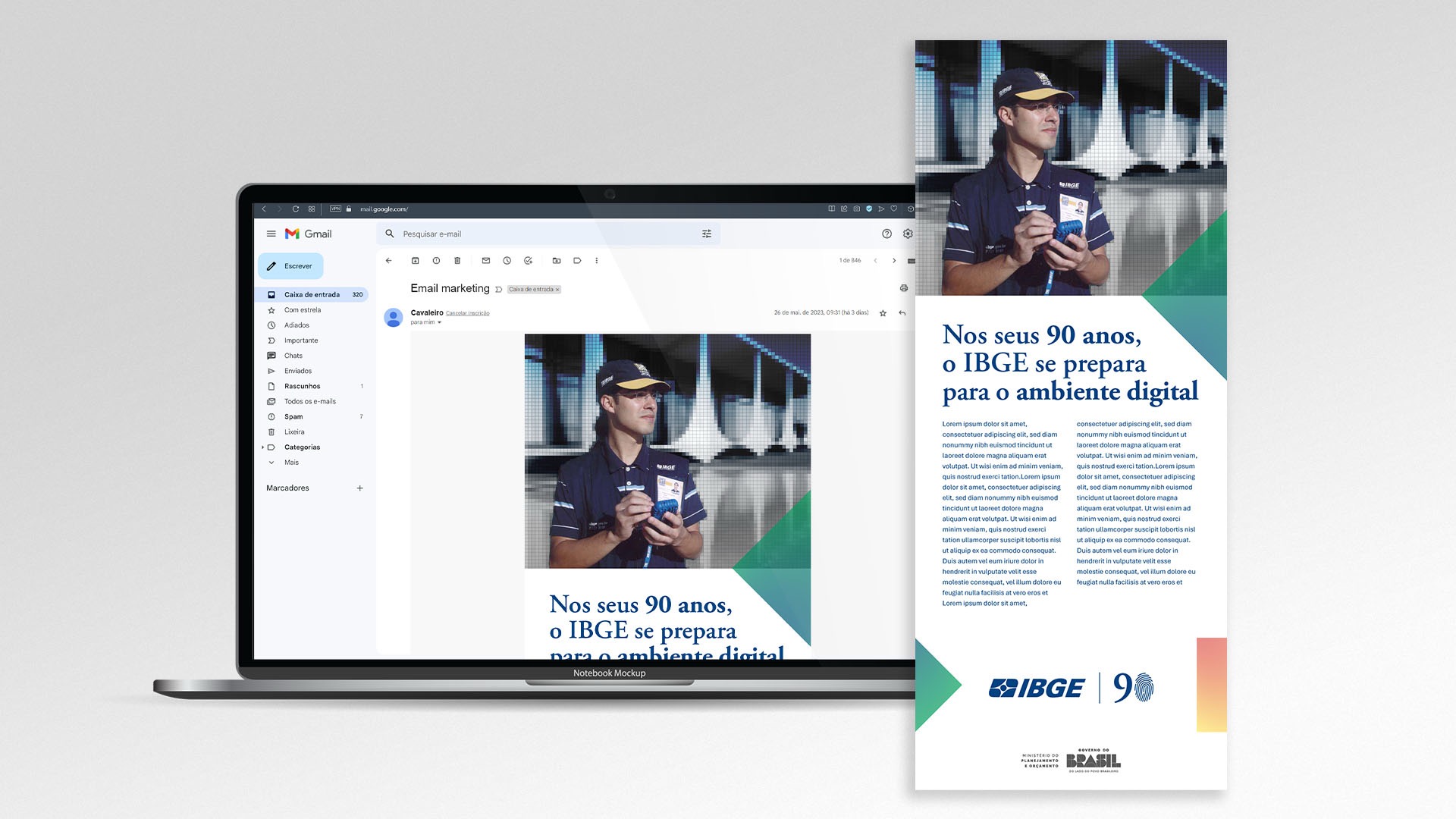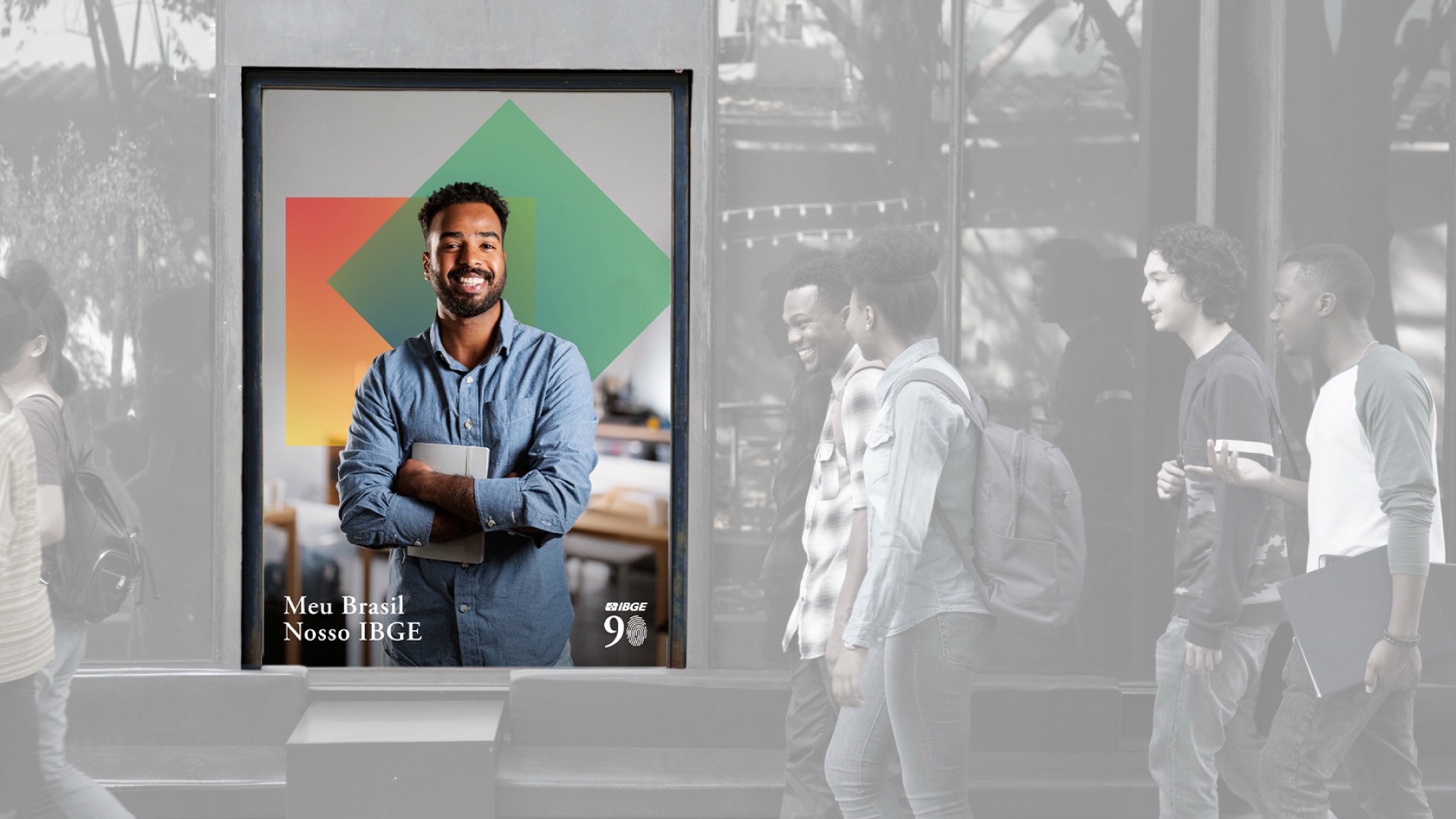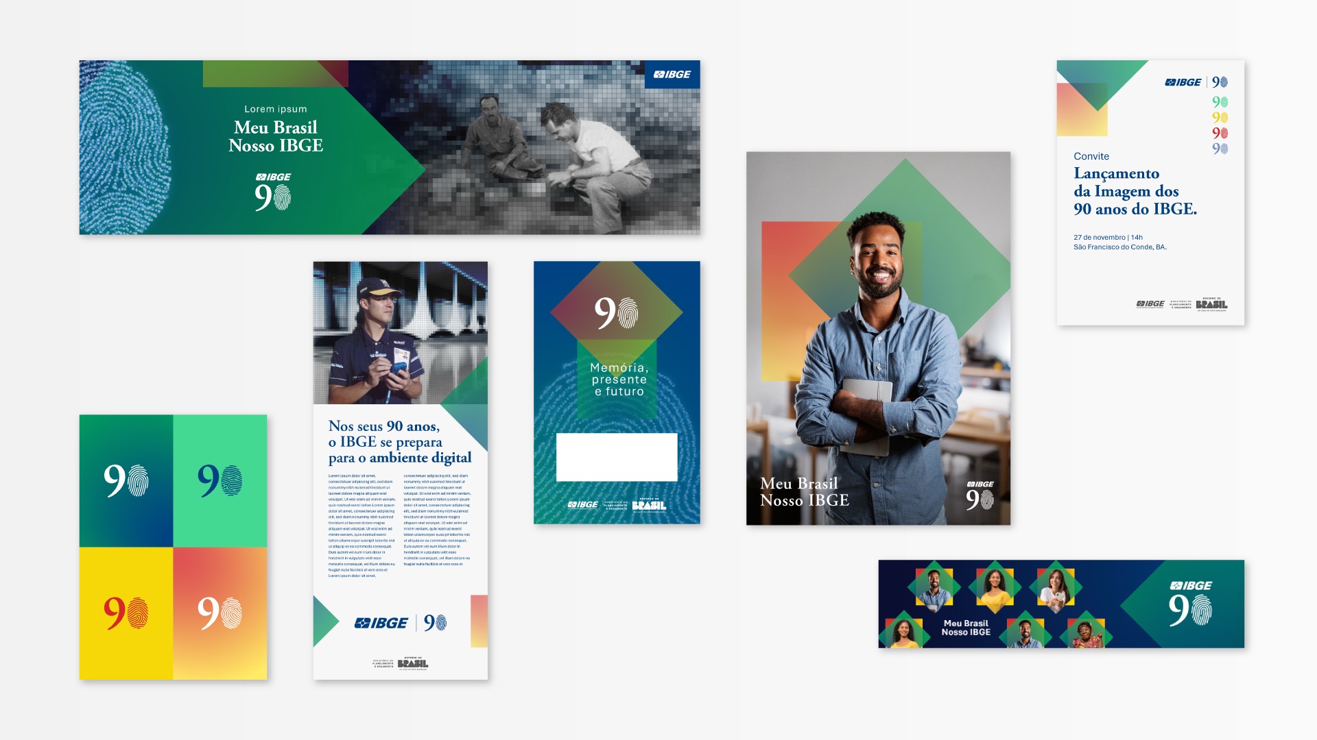 A partir da interação dos grafismos com retratos que mostrem a diversidade da população brasileira conseguimos reforçar a importância da relação da população brasileira com o IBGE e a ideia de que os brasileiros fazem parte dos seus 90 anos.