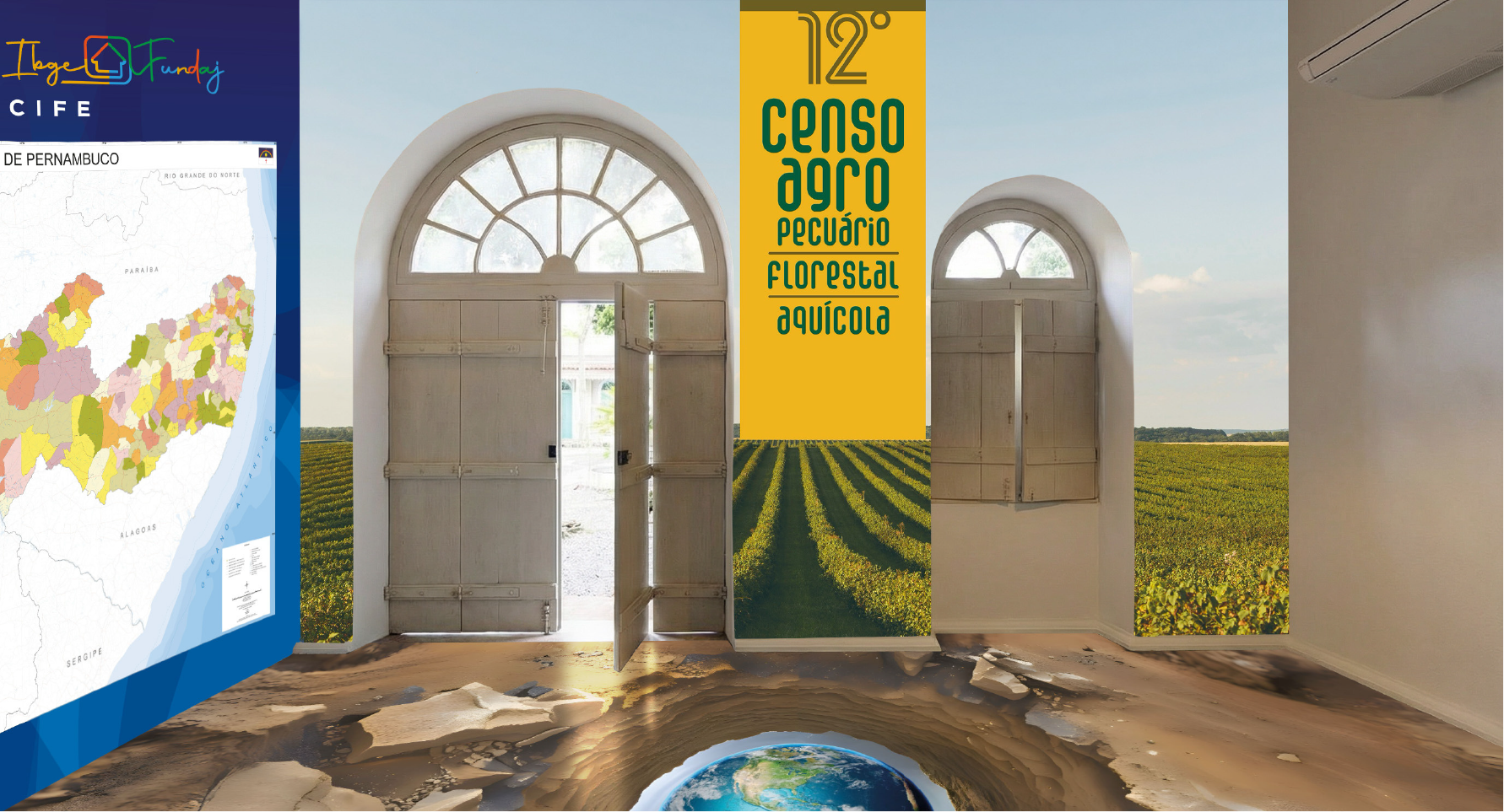 - Proposta do espaço: Cria um ambiente público onde estatísticas e mapas dialogam com a memória social da FUNDAJ, com foco no próximo Censo Agropecuário, Florestal e Aquícola.