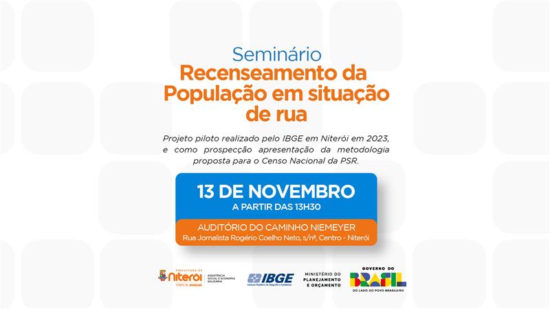 This Thursday (November 13), the IBGE and the Municipal Government of Niterói/RJ will be participating in the seminar "Enumeration of the homeless population," which will discuss the pilot project applied to the city in 2023. Results of the initial study, intended to support a proposed methodology for the 1st National Census of the Homeless Population, will be presented.