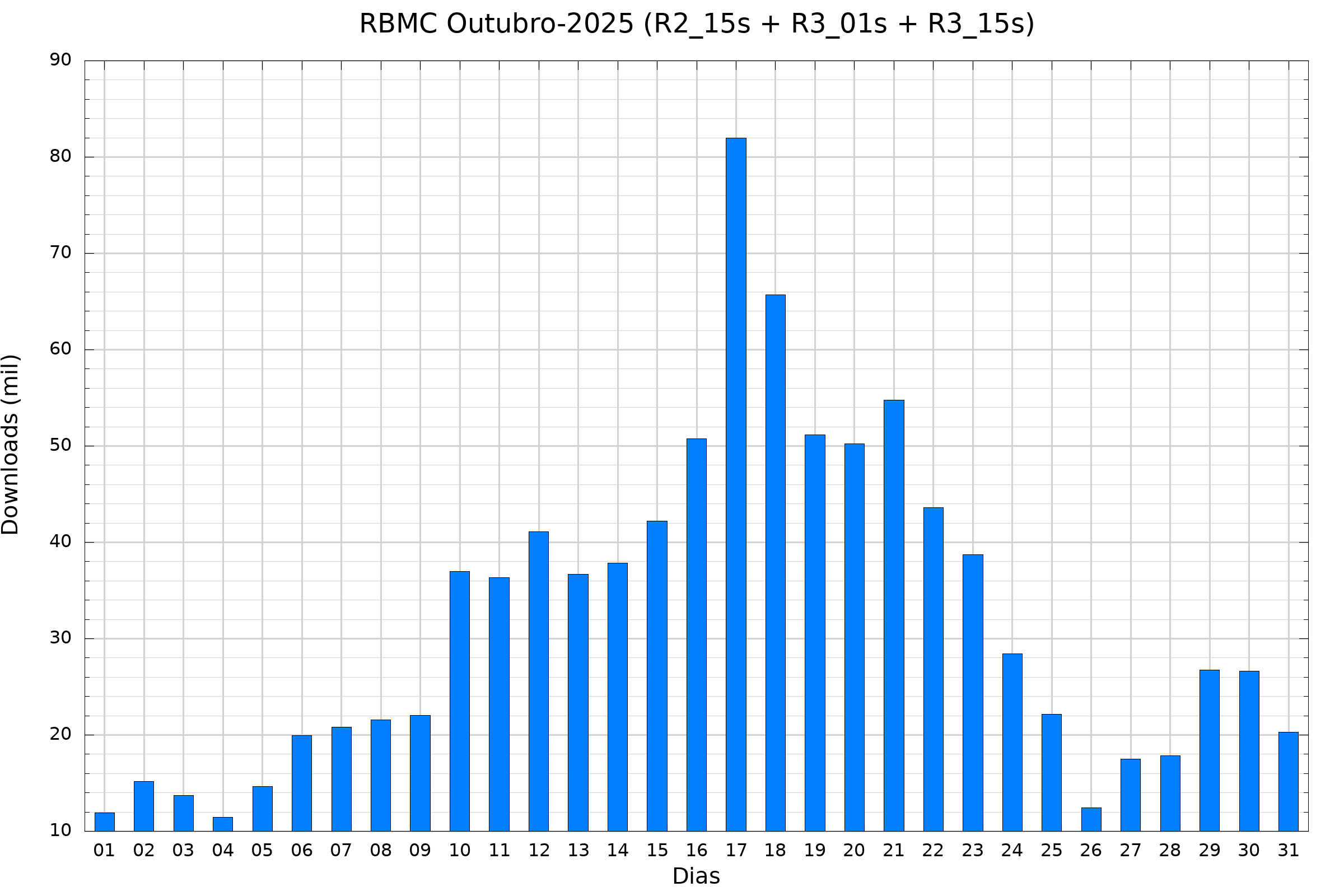 The files are made available daily with a interval of 15 seconds at ftp://geoftp.ibge.gov.br/informacoes_sobre_posicionamento_geodesico/rbmc/dados_RINEX3/, with double compression, Hatanaka (.crx) and gzip (.gz).