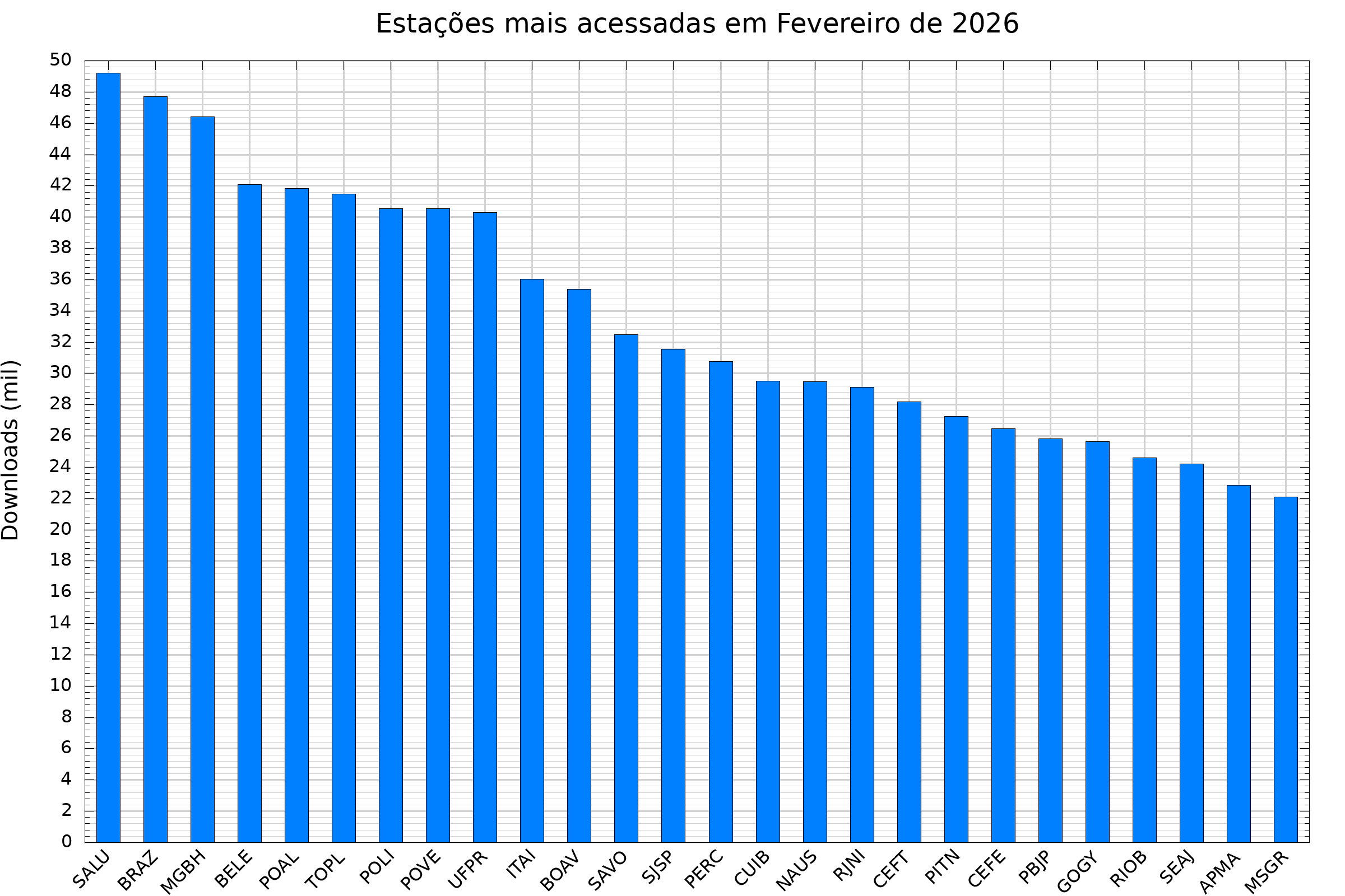 | Estação com disponibilização de dados em 1 segundo | Dados a partir de |